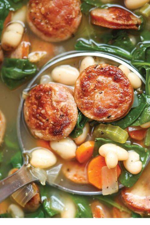 Slow Cooker Sausage, Spinach And White Bean Soup