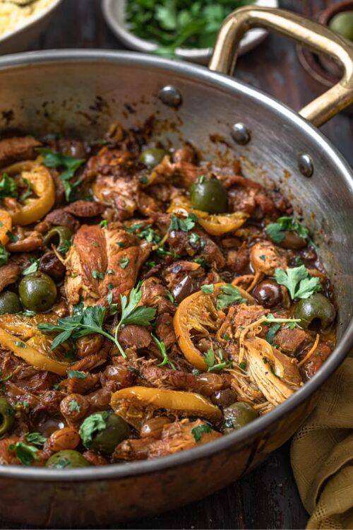 Preserved lemon is used to make this chicken dish. With a combination of chicken, paprika, preserved lemon, and olives you get a delicious chicken recipe.