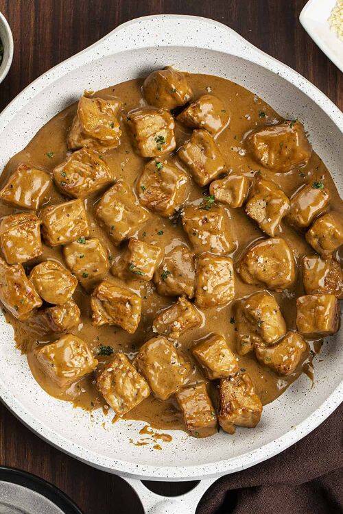 It is best served with garlic mashed potatoes or salad. You can keep the leftovers in an airtight container in the fridge, and it will be good for up to 4 days. It freezes well for up to 6 months.