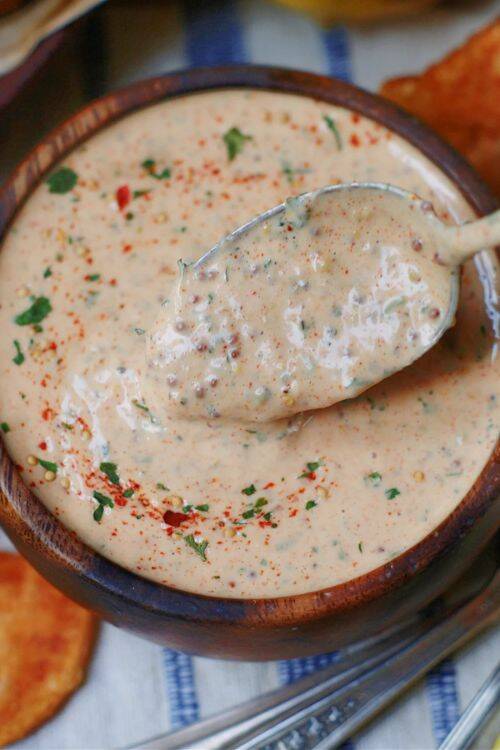 This creamy sauce is quick and easy to make. This sauce also works as a dip or a spread. You can also make it in advance.