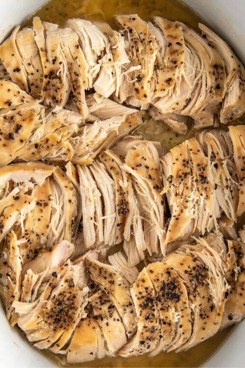 Shredded chicken is used in salads, enchiladas, tacos, and many other chicken dishes.